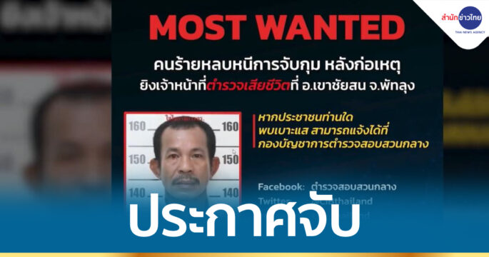 ตำรวจสอบสวนกลางออกประกาศจับ “ฉุย เขาจันทร์” ยิงปะทะเจ้าหน้าที่ที่พัทลุง ตำรวจเสียชีวิต 1 นาย บาดเจ็บ 2 นาย