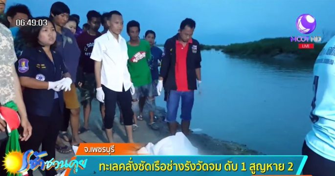 เพชรบุรีทะเลคลื่นลมแรง ซัดเรือช่างรังวัดที่ออกไปปักแนวเขตกำแพงกันคลื่นลม จมหายไปกับทะเล ก่อนพบเป็นศพถูกคลื่นซัดเข้าฝั่ง 1 ยังสูญหายอีก 2 ราย