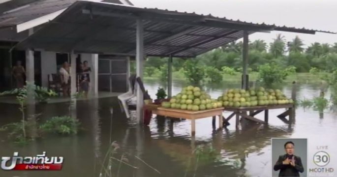 สถานการณ์น้ำท่วมใน จ.นครศรีธรรมราช แม้หลายพื้นที่เริ่มคลี่คลาย แต่อีกหลายพื้นที่ยังน่าเป็นห่วง โดยเฉพาะพื้นที่ปลูกส้มโอทับทิมสยาม