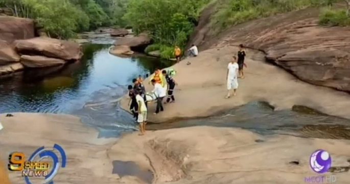 พลเมืองดีช่วยกันงมร่างของชายชาวมาเลซีย วัย 34 ปี พร้อมลูกสาววัย 10 ปี ขึ้นมาจากน้ำตกถ้ำพระ ภายในเขตรักษาพันธุ์สัตว์ป่าภูวัว จ.บึงกาฬ