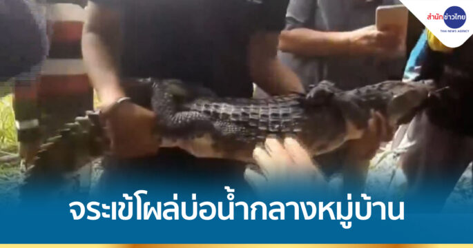 ชาวบ้านผวา! จระเข้ 2 เมตร โผล่ในบ่อน้ำกลางหมู่บ้าน