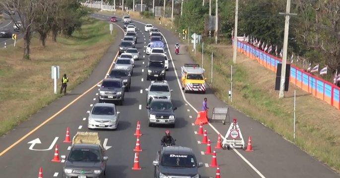 บุรีรัมย์ 29 ธ.ค.- ตำรวจบุรีรัมย์ปิดจุดเสี่่ยงกลับรถ 10 จุด ป้องกันอุบัติเหตุช่วงเดินทางปีใหม่ ขณะที่ทางหลวงสายโชคชัย-เดชอุดม มุ่งสู่อีสานใต้รถเต็มทุกช่องทาง ยังพอเคลื่อนตัวได้ คาดคืนนี้ยิ่งหนาตา การสัญจรช่วงเทศกาลส่งท้ายปีเก่าต้อนรับปีใหม่ 2561 หลายเส้นทางในวันนี้ (29 ธ.ค.) หนาตามากกว่าเมื่อวาน เนื่องจากประชาชนที่ทำงานอยู่กรุงเทพมหานครและปริมณฑลเดินทางกลับภูมิลำเนาล่วงหน้า เพื่อหลีกเลี่ยงความแออัด สำหรับจังหวัดบุรีรัมย์ ทางหลวงหมายเลข 24 โชคชัย–เดชอุดม เป็นอีกหนึ่งเส้นทางมีปริมาณรถยนต์เนืองแน่นมาตั้งแต่เช้า ซึ่งสามารถเดินทางสู่ได้หลายจังหวัดภาคอีสานตอนล่าง แต่ภาพรวมการจราจรยังเคลื่อนตัวตามกันไปได้เรื่อย ๆ ไม่ถึงกับติดขัด ท่ามกลางตำรวจคอยอำนวยความสะดวกเป็นระยะ ๆ เพื่อไม่ให้รถติดสะสม คาดว่าจะมีการเดินไปตลอดทั้งวันจนถึงค่ำคืน นอกจากนี้ เจ้าหน้าที่ตำรวจและแขวงทางหลวงชนบทได้ปิดจุดกลับรถเสี่ยงที่จะเกิดอุบัติเหตุมากกว่า 10 จุด ในช่วงที่การจราจรหนาแน่น พร้อมติดป้ายเตือนจุดเสี่ยงอันตราย โดยเฉพาะทางแยกหรือทางโค้ง เพื่อให้ประชาชนขับขี่ด้วยความระมัดระวัง.-สำนักข่าวไทย
