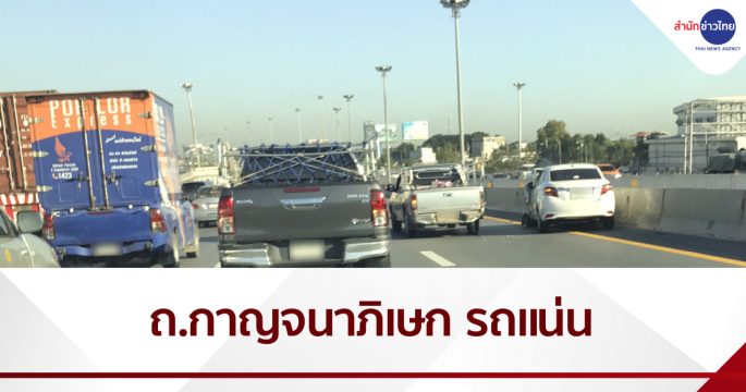 สวพ.FM91 และ JS100 รายงานการจราจร เช้าวันอังคาร (24 พ.ย.) ถนนกาญจนาภิเษก ช่วงต่างระดับรามอินทรา จุดเชื่อมต่อด่านจตุโชติ บริเวณ กม.42+600 รถเก๋งกับรถปิกอัพชนกัน ขวางช่องทางขวา การจราจรติดขัด