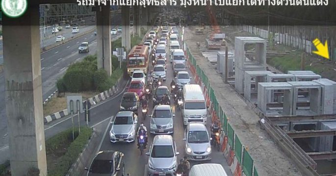 สวพ.FM91 รายงานจราจรเช้าวันจันทร์ ถนนพหลโยธิน จากแยกรัชโยธิน มุ่งหน้าแยกลาดพร้าว รถมาก สะพานกรุงเทพ เคลื่อนตัวได้เรื่อยๆ