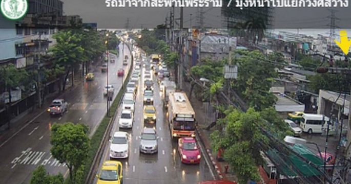 จราจรเช้าวันพฤหัสบดี ฝนตกโปรยปราย ถนนรัชดา จากสะพานพระราม7 มุ่งหน้าวงศ์สว่าง-ต่างระดับรัชวิภา รถมาก ท้ายอยู่สะพานพระราม7 ส่วนถนนรัชดา ช่วงหน้าศาลอาญา รถมาก ทั้งขาเข้าและขาออก