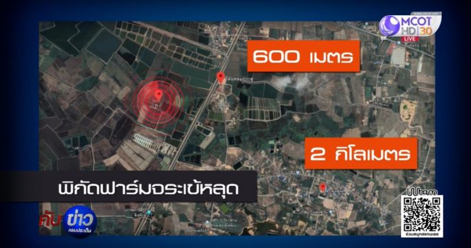 ตรวจพิกัดบ่อจระเข้ พบอยู่กลางทุ่งนา ห่างจากชุมชนและโรงเรียน 2 กิโลเมตร แต่อยู่ใกล้คลองชลประทาน