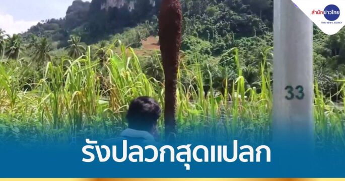 ฮือฮาของแปลก ชาวบ้านพบปลวกทำรังสูงโด่ เหมือนสากตำข้าว อยู่ริมถนนหลังวัด งานนี้ไม่พลาดผูกผ้าสีจุดธูปเทียนขอโชคลาภทันที