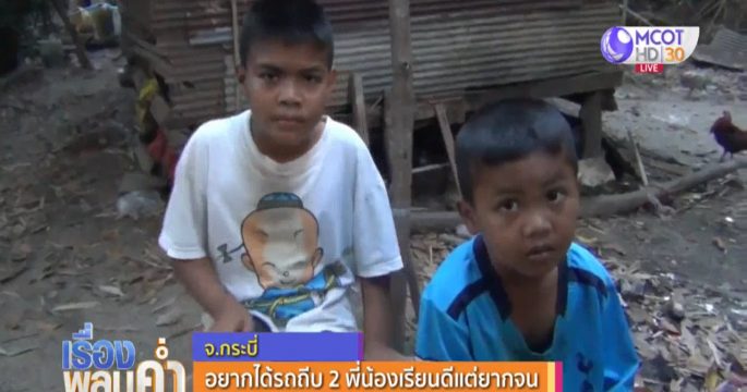 ใกล้จะถึงวันเด็กแห่งชาติแล้ว เด็กที่มีโอกาส ก็คงจะมีความสุขรอคอยวันดีดี ที่จะไปร่วมกิจกรรมวันเด็กตามที่ต่าง ๆ แต่สำหรับ ดช.สองพี่น้องที่กระบี่ น่าจะไม่ใช่วันที่ดีนัก เพราะมีเพียงตาวัย 68 ปีที่เลี้ยงดูมา วันเด็กปีนี้ บอกอยากได้จักรยานขี่ไปโรงเรียน