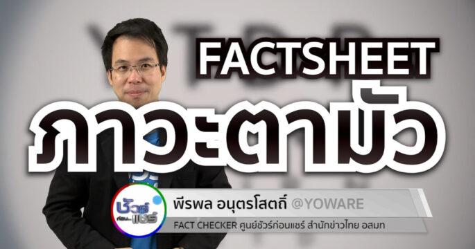 31 มีนาคม 2567 – ตามที่มีการแชร์บทความและภาพตัวอย่างที่คนสายตาเอียงมองเห็น พร้อมทั้งแนะนำวิธีการทดสอบสายตาเอียง โดยให้ปิดทีละข้าง แล้วมองไปที่ภาพเส้นตรงในแนวรัศมีตามองศาต่าง ๆ หากพบว่าบางเส้นมีความเข้มจางไม่เท่ากัน แสดงว่ามีภาวะสายตาเอียงแล้วนั้น บทสรุป : จริง แชร์ได้ ✅ ศูนย์ชัวร์ก่อนแชร์ ตรวจสอบกับ ศาสตราจารย์วุฒิคุณ นพ.ศักดิ์ชัย วงศกิตติรักษ์ ประธานวิชาการ ราชวิทยาลัยจักษุแพทย์แห่งประเทศไทย ภาวะสายตาเอียงเกิดจากการที่กระจกตามีความโค้งไม่เท่ากันในแต่ละแกน ทำให้เกิดจุดโฟกัส 2 จุดไม่รวมเป็นภาพเดียว โดยที่จุดหนึ่งโฟกัสที่หลังหรือหน้าจอประสาทตา สายตาเอียงอาจเกิดจากกรรมพันธุ์ โดยเป็นแต่กำเนิดหรือเกิดขึ้นในภายหลัง จากการบาดเจ็บทางดวงตา วิธีทดสอบสายตาเอียงตามที่แชร์มา คือ ให้ปิดตาหนึ่งข้างแล้วมองไปที่เส้นแฉกในมุมต่าง ๆ หากเห็นบางเส้นเข้ม จาง ไม่เท่ากัน แสดงว่ามีปัญหาสายตาเอียงแล้ว แพทย์กล่าวว่า เป็นวิธีทดสอบทางการแพทย์อยู่แล้วหากลองเอามือปิดตาข้างหนึ่งแล้วมองไปยังเส้นตรงหลาย ๆ เส้นหากมองเห็นทุกเส้นพบว่าสีเข้มไม่เท่ากัน บางเส้นสีเข้ม บางเส้นสีอ่อน แสดงว่าเริ่มมีแนวโน้มที่จะมีภาวะสายตาเอียง ส่วนใหญ่อาการสายตาเอียง มักไม่ปรากฏอาการที่รุนแรงจนต้องทำการรักษา แต่สำหรับการแก้ปัญหาการมองเห็นสามารถทำได้โดยการสวมใส่แว่นตาและใส่คอนแทคเลนส์ และการทำเลสิค สัมภาษณ์เมื่อ : 27 กุมภาพันธ์ 2567ตรวจสอบข้อเท็จจริงโดย […]