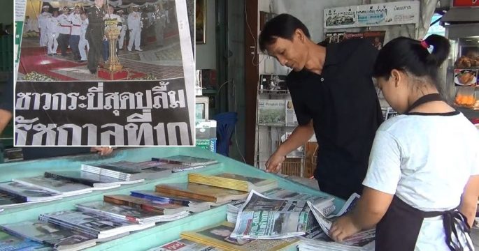 ร้านหนังสือพิมพ์ในตัวเมืองกระบี่ขายดีเป็นพิเศษ คนแห่ซื้อ นสพ.เก็บเป็นที่ระลึกให้ลูกหลานรู้ว่า รัชกาลที่ 10 เสด็จพระราชดำเนินมาทรงปฏิบัติพระราชกรณียกิจที่ จ.กระบี่ เป็นจังหวัดแรกของประเทศไทย