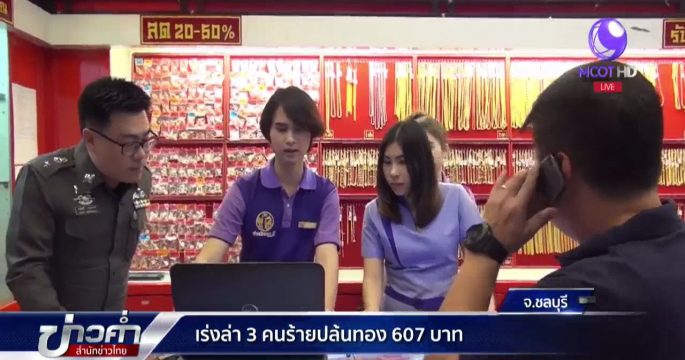 ความคืบหน้า 3 คนร้าย บุกปล้นร้านทองภายในห้างโลตัสชลบุรีเมื่อเย็นวานนี้ กวาดทองกว่า 600 บาทหลบหนีไป ตำรวจเร่งแกะรอยจากกล้องวงจรปิดติดตาม ไล่ล่าคนร้าย พร้อมตั้งรางวัลนำจับ 3 แสนบาท สำหรับผู้แจ้งเบาะแส