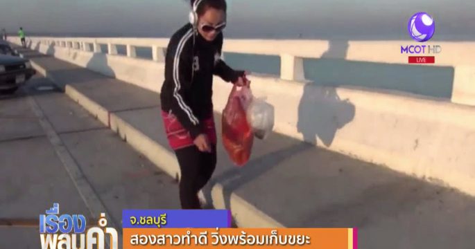 จิตอาสาน่าชื่นชมสองสาวที่ไม่เคยรู้จักกัน แต่มาวิ่งออกกำลังกายที่เดียวกัน เห็นขยะเกลื่อนสะพานใหม่ถนนเลียบชายทะเลทนไม่ได้ ช่วยกันเก็บใส่ถุง