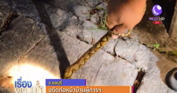 ลูกงูเหลือมหัวติดฝาท่อระบายน้ำ หน้าบ้านผู้การตำรวจภูธร จ.ชลบุรี เจ้าหน้าที่กู้ภัยนำออกจากท่ออย่างปลอดภัย