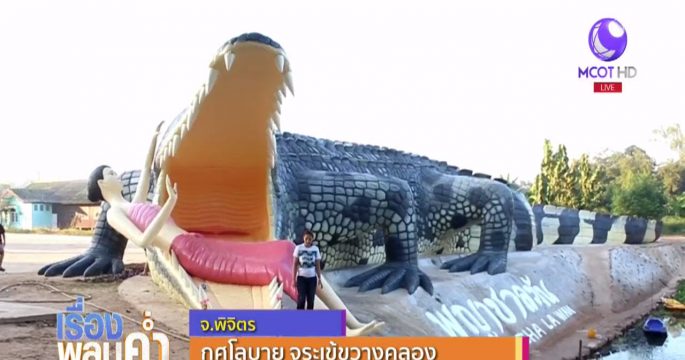 รูปปั้นพญาชาละวันตัวใหญ่คาบตะเภาแก้ว นอนผงาดขวางคลองน้ำ มีขนาดความยาวถึง 47 เมตร กว้าง 5.5 เมตร และความสูง 5.5 เมตร สร้างขวางลำคลอง “คลองคู้”