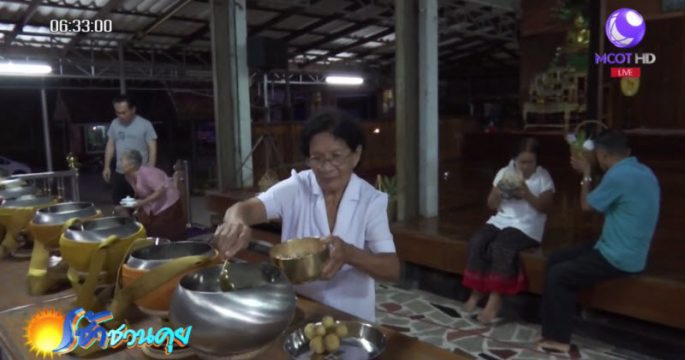 งานมหาสงกรานต์ตะปอน ตำนานแห่เกวียนผ้าพระบาท ที่ อ.ขลุง จ.จันทบุรี เช้านี้เริ่มต้นกันด้วยการทำบุญตักบาตรตามประเพณี รับวันปีใหม่ไทย ที่วัดตะปอนใหญ่