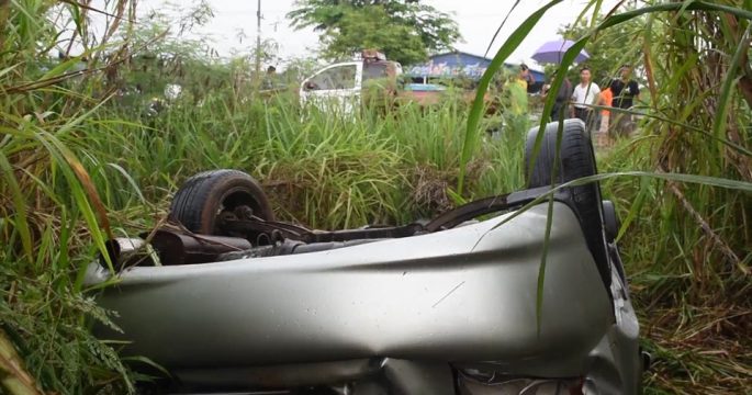 จันทบุรี 29 เม.ย.- 2 คนงานสวนผลไม้แอบขโมยรถเก๋งเถ้าแก่ขับไปเที่ยวกลางคืน เกิดอุบัติเหตุเสียหลักพลิกคว่ำตกข้างทาง เหวี่ยงร่างกระเด็นฟาดจอมปลวก ดับคาที่ 1 ราย ส่วนอีกคนบาดเจ็บเล็กน้อย หลบหนีไปเพราะเกรงความผิด วันนี้(29 เม.ย.) ร.ต.อ.ชนินท์วิชญ์ แสงสุวรรณ ร้อยเวร สภ.นายายอาม จ.จันทบุรี รับแจ้งเกิดอุบัติเหตุรถยนต์เก๋งเสียหลักพลิกคว่ำตกข้างทางถนนสุขุมวิท(จันทบุรี-กรุงเทพฯ) บริเวณตู้ยามทางหลวงช้างข้าม หมู่ 8 ต.นายายอาม อ.นายายอาม และมีผู้เสียชีวิตด้วย 1 ราย จึงเดินทางไปตรวจสอบ พร้อมด้วยเจ้าหน้าที่กู้ภัยสมาคมสว่างกตัญญูธรรมสถานจันทบุรี ในที่เกิดเหตุ พบรถยนต์เก๋ง ฮุนได สีบรอนซ์ หมายเลขทะเบียน กค-14 จันทบุรี อยู่ในสภาพพลิกหงายท้องตกลงไปในป่าข้างทาง พังเสียหายทั้งคัน ห่างออกไปประมาณ 40 เมตร พบศพชาย 1 ราย อายุประมาณ 25-30 ปี อยู่ในสภาพนอนคว่ำหน้าอยู่ข้างจอมปลวก คาดถูกแรงเหวี่ยงกระเด็นออกมาจากตัวรถไปกระแทกกับจอมปลวก เนื่องจากบริเวณศีรษะพบมีบาดแผลฉกรรจ์ ตรวจสอบภายในตัวเบื้องต้นไม่พบเอกสารระบุว่าผู้ตายเป็นใคร จากการสอบสวนนายสุภาพ แสนดี […]