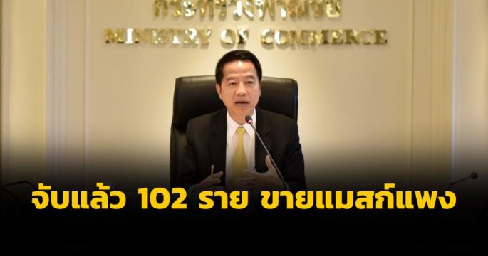 ปลัดพาณิชย์เผยจับกุมดำเนินคดีขายหน้ากากแพงเกินจริง 102 ราย เริ่มวันนี้ตรวจจับขายเกินชิ้นละ 2.50 บาท