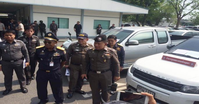 ทหารและตำรวจ สนธิกำลังจับกุม นายกันต์ธีร์ ธนัสดีกุล และนายมิตรชัย ธนัสดีกุล ผู้ต้องหา 2 คน พร้อมรถยนต์ 2 คัน ที่จอดอยู่บริเวณลานสีข้าวโพด อ.เชียงของ จ.เชียงราย