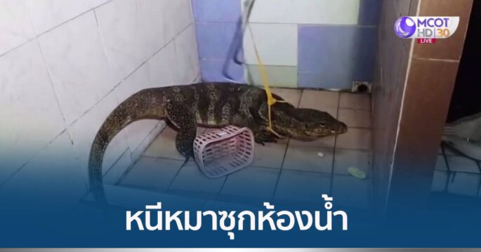 ตัวเงินตัวทองยาวกว่า 2 เมตร โดนหมาไล่เห่า หนีเข้าไปซ่อนตัวอยู่ในห้องน้ำชาวบ้าน โร่แจ้งหน่วยล่ามาตามจับ