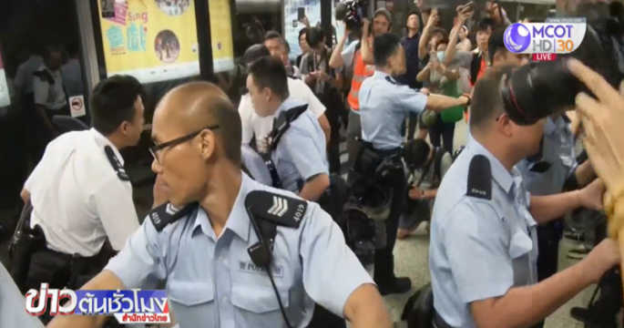 ตำรวจฮ่องกงเข้าจับกุมผู้ประท้วงที่สถานีรถไฟใต้ดิน หลังผู้ประท้วงปิดกั้นถนนหลายสายใกล้สนามบินฮ่องกง ทำลายทรัพย์สินภายในสถานีรถไฟ