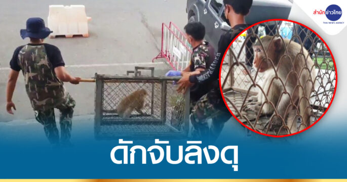 เจ้าหน้าที่ดักจับลิงแสม ในตลาดโพธาราม จ.ราชบุรี หลังสร้างความเดือดร้อน บุกขโมยผักและผลไม้ของพ่อค้าแม่ค้าที่นำมาวางขายในตลาด แถมยังมีนิสัยดุร้าย