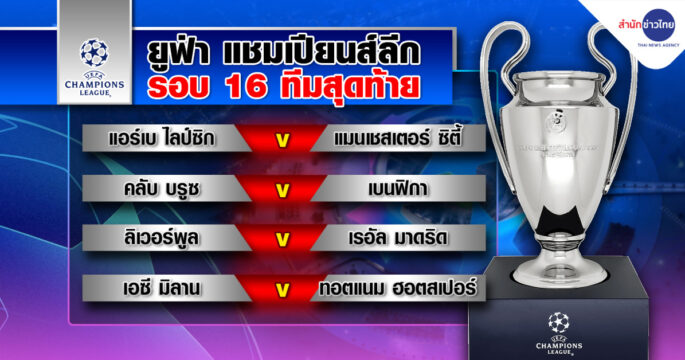 ยูฟ่าจับสลากฟุตบอลยูฟ่า แชมเปียนส์ ลีก รอบ 16 ทีมสุดท้ายใหม่ หลังเกิดความผิดพลาดทางเทคนิค หยิบลูกบอลผิดลูกใส่ลงไปในโถ