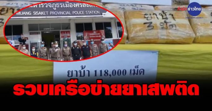 รองผู้บัญชาการตำรวจภูธรภาค 3 นำทีมแถลงจับผู้ต้องหาคดียาเสพติดของ สภ.เมืองศรีสะเกษ พร้อมยึดของกลางอาวุธปืนขนาด 9 มม. กระสุนปืน 62 นัด ยาบ้า 118,000 เม็ด และไอซ์อีก 1,325 กรัม รวมมูลค่าประมาณ 3.5 ล้านบาท เร่งขยายผลไปยังเครือข่าย