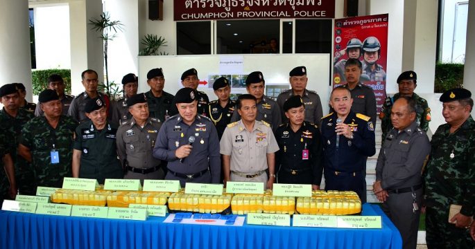 ด่านชุมพรรวบยกแก๊งยาบ้าเกือบ 500,000 เม็ด ขับหนีไปติดหล่มสวนยาง ขณะที่รถนำทางถูกจับคาปั๊ม สารภาพรับมาจากชายแดนทางเหนือเตรียมส่งใต้ ด้าน ป.ป.ส.ภาค 8 ระบุเพิ่งเจอครั้งแรกยาบ้ายี่ห้อใหม่