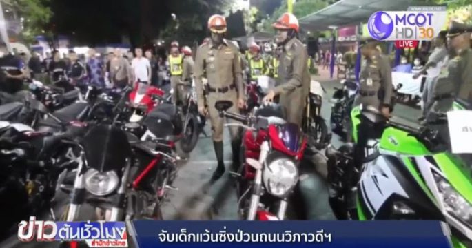 ตำรวจจราจรสนธิกำลังร่วมกับตำรวจนครบาล 1 จับกุมกลุ่มวัยรุ่นมั่วสุมแข่งรถบนถนนวิภาวดี-รังสิต ยึดรถจักรยานยนต์ 45 คัน