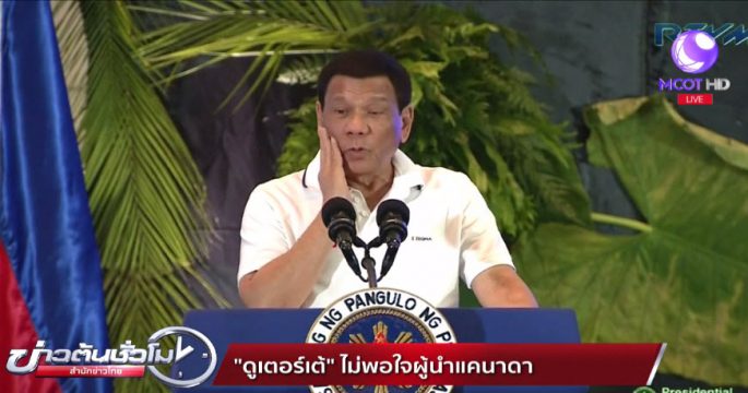 ประธานาธิบดีโรดริโก ดูเตอร์เต ของฟิลิปปินส์ วิพากษ์วิจารณ์นายกรัฐมนตรีจัสติน ทรูโด ของแคนาดา อย่างรุนแรง ที่ไม่ยอมส่งมอบเฮลิคอปเตอร์ที่ฟิลิปปินส์สั่งซื้อไปเมื่อเดือนกุมภาพันธ์ที่ผ่านมา