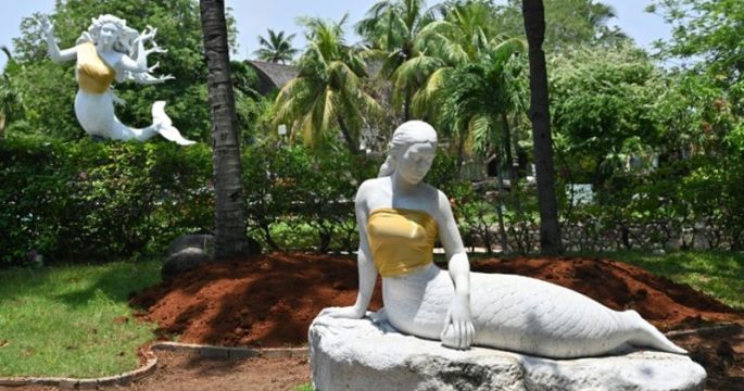 สวนสนุกในกรุงจาการ์ตาของอินโดนีเซียนำผ้ามาพันหน้าอกรูปปั้นนางเงือกสองตัว ตามนโยบายใหม่ที่เน้นค่านิยมความเป็นตะวันออก หลังปล่อยให้นางเงือกเปลือยอกมาหลายปี