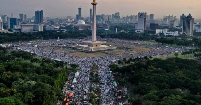 ชาวมุสลิมกลุ่มอนุรักษ์นิยมจำนวนมากจัดการชุมนุมอย่างสันติใจกลางกรุงจาการ์ตาในวันนี้ หนึ่งในกลุ่มที่ร่วมชุมนุมเผยว่า ต้องการส่งเสริมความสามัคคี