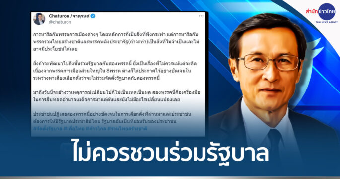 “จาตุรนต์” แย้งเพื่อไทยไม่ควรชวน รทสช.-พปชร. ร่วมรัฐบาล