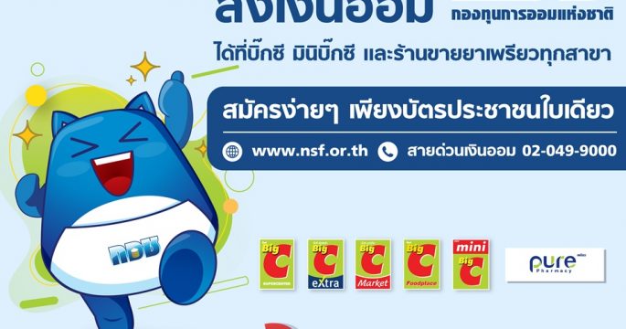กอช.เพิ่มจุดบริการรับสมัครสมาชิกและส่งเงินออมสะสม ที่จุดบริการบิ๊กเซอร์วิสในบิ๊กซีทุกสาขาทั่วประเทศ ฟรีค่าธรรมเนียมถึง 31 ก.ค.นี้