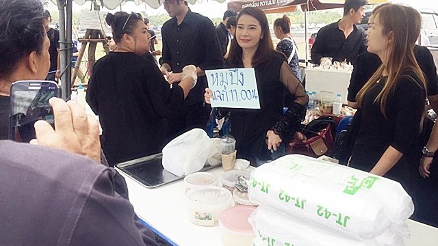 จิตอาสาร่วม 200 คนช่วยบรรจุข้าวพอเพียงเพื่อแจกจ่ายประชาชนที่เข้าถวายสักการะพระบรมศพ