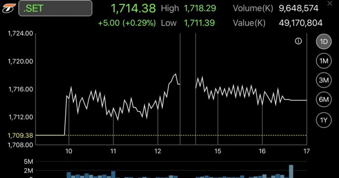 หุ้นไทยบวก 5 จุด รับข่าวดีจีดีพีไตรมาส 3 ดีเกินคาด ขณะที่เงินบาทแข็งค่าหนุนต่างชาติไหลเข้า