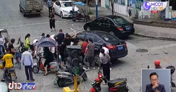 ผู้เห็นเหตุการณ์เกือบ 20 คนเข้าช่วยเหลือชายชราถูกรถชนขณะพยายามเดินข้ามทางแยกที่เมืองหงเฉียว ทำให้ขาซ้ายติดอยู่ในล้อรถ