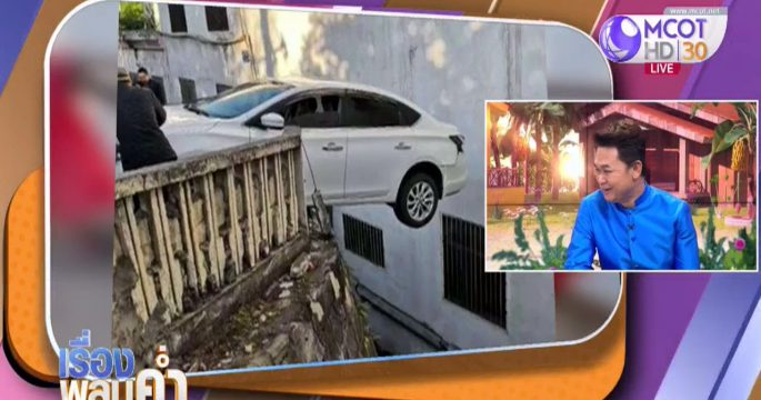 ตำรวจและชาวบ้านช่วยดึงรถชายชาวจีนและภรรยาที่หลุดโค้งเกือบตกช่องขอบทางลึกในมณฑลเสฉวน