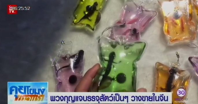 พวงกุญแจที่บรรจุสัตว์เป็นๆ เอาไว้ภายในยังคงวางขายอย่างเกลื่อนกลาดตามท้องถนนในเมืองต่างๆ ของจีน แม้องค์กรคุ้มครองสัตว์จะยื่นฎีกาให้เป็นสิ่งผิดกฎหมายก็ตาม