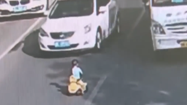 คลิปวิดีโอทารกน้อยขับรถของเล่นสีเหลืองแล่นสวนทางวิ่งจราจรกลางถนนจริงในช่วงชั่วโมงเร่งด่วนที่เมืองทางตะวันออกของจีนได้รับการเผยแพร่