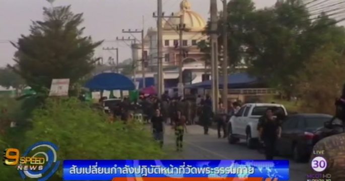 ความคืบหน้าการตรวจค้นวัดพระธรรมกาย เช้าวันนี้บริเวณประตู 5 และ 6 เลียบคลองแอน มีการสับเปลี่ยนกำลังให้ตำรวจตระเวนชายแดนหญิงเข้าไปปฏิบัติหน้าที่จุดคัดกรอง