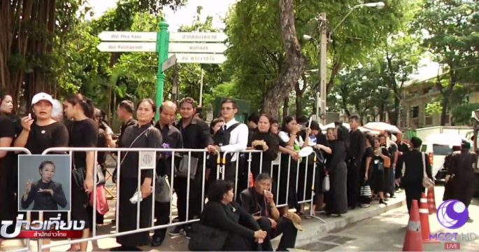 ประชาชนจากทั่วสารทิศต่อแถวรอเข้ากราบถวายบังคมพระบรมศพ จนแถวยาวล้นออกมานอกจุดคัดกรองทั้งสองจุด