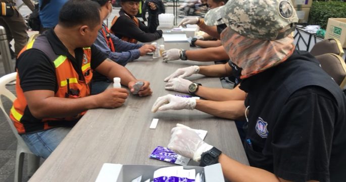 ดีเดย์ตำรวจตั้งจุดตรวจปัสสาวะหาสารเสพติด 5 วิน จักรยานยนต์ย่านห้วยขวาง สร้างความเชื่อมั่นปลอดภัยให้ผู้โดยสาร ก่อนขยายผลตรวจทั่วกรุงเทพฯ