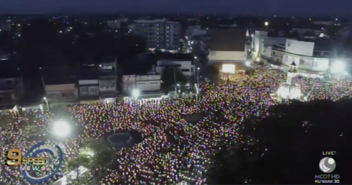 ชาวลำปางกว่า 30,000 คนพร้อมใจจุดเทียนแสดงความอาลัยในกิจกรรม กอดรูปพ่อไว้แนบใจหมื่นดวงใจ ถวายอาลัยผ่านแสงเทียน