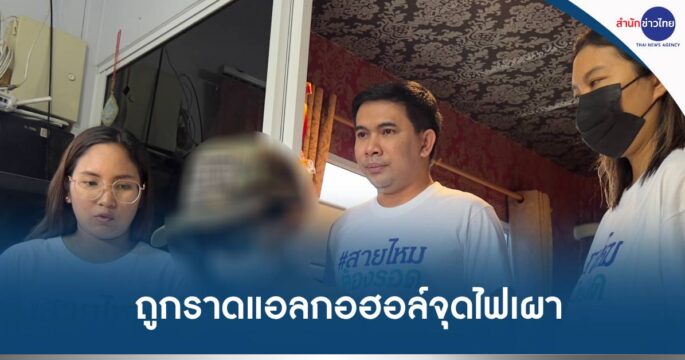 หญิงวัย 34 ปีหอบลูกชาย 11 ขวบลุยฝน ขอสายไหมต้องรอดช่วย หลังถูกรุ่นพี่ราดแอลกอฮอล์แล้วจุดไฟเผา ทำให้ได้รับบาดเจ็บตามร่างกาย