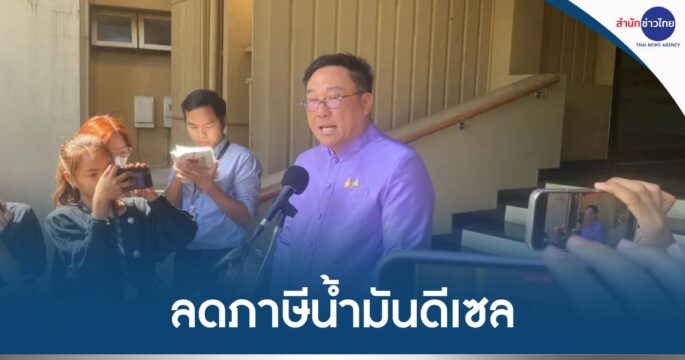 รมช.คลัง แจงมติ ครม.ปรับลดภาษีสรรพสามิตน้ำมันดีเซล 1 บาท ตั้งแต่วันนี้ถึง 19 เม.ย. หวังช่วยลดค่าครองชีพประชาชน ขอประเมินอีกครั้งจะขยายเวลาต่อหรือไม่