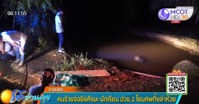 นักเรียน ปวช.1 ไปกินหมูกระทะหลังเลิกเรียน ไม่กลับบ้าน 2 วัน พบกลายเป็นศพถูกโยนทิ้งลำห้วยกลางสวนปาล์ม จ.ชุมพร ที่ขมับขวามีรอยกระสุนปืน