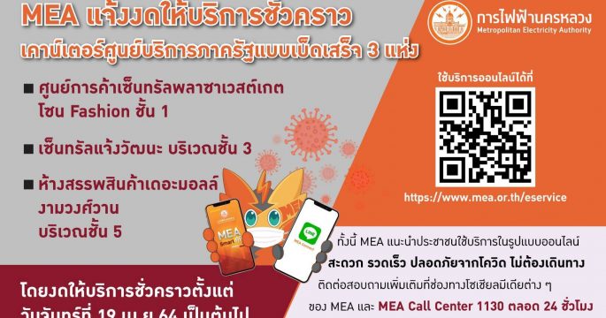 11 เม.ย.- ตามมติคณะรัฐมนตรีเห็นชอบให้วันที่ 12 เมษายน 2567 เป็นวันหยุดราชการเพิ่มกรณีพิเศษ ทำให้การไฟฟ้าส่วนภูมิภาค (PEA) มีวันหยุดยาว 6 วัน ตั้งแต่ วันที่ 12 – 17 เมษายน 2567 เพื่ออำนวยความสะดวกแก่ผู้ใช้ไฟฟ้าในการชำระค่าไฟฟ้า PEA แนะนำให้ผู้ใช้ไฟฟ้าชำระค่าไฟฟ้าผ่านทางช่องทางออนไลน์ ดังนี้ 👉PEA Smart Plus👉ตัวแทนจุดบริการรับชำระเงิน👉PEA e-Pay👉Mobile Application ของธนาคาร และ ผู้ให้บริการภายนอก👉ตู้เติมเงิน👉Website ของธนาคารและ Website ผู้ให้บริการภายนอก👉หักบัญชีเงินฝากธนาคาร และ หักบัญชีบัตรเครดิต ทั้งนี้ หากประชาชนที่ประสงค์จะแจ้งเหตุไฟฟ้าขัดข้องหรือสอบถามข้อมูลเกี่ยวกับไฟฟ้า สามารถติดต่อได้ที่ 1129 PEA Contact Center ตลอด 24 ชั่วโมง.