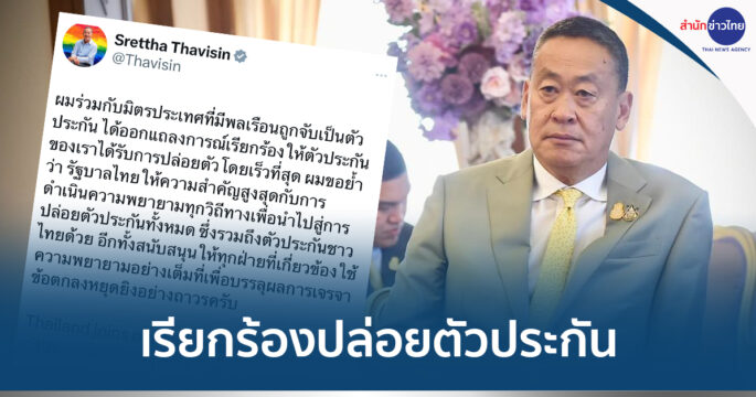 นายกฯ เผย ไทยร่วมกับมิตรประเทศ ออกแถลงการณ์เรียกร้องปล่อยตัวประกันทั้งหมดในฉนวนกาซาโดยเร็วที่สุด หนุนเจรจาข้อตกลงหยุดยิงอย่างถาวร