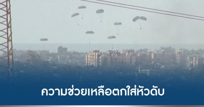 เครื่องบินสหรัฐหย่อนความช่วยเหลือด้านมนุษยธรรมทางอากาศ ลงพื้นที่เขตฉนวนกาซา ครั้งแรก